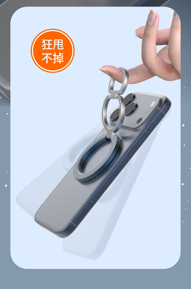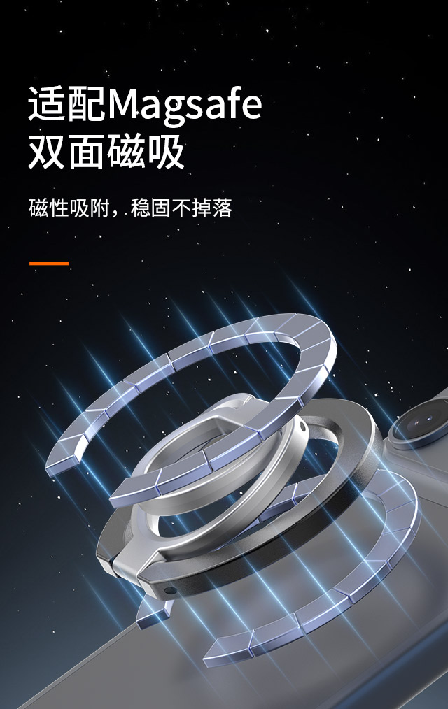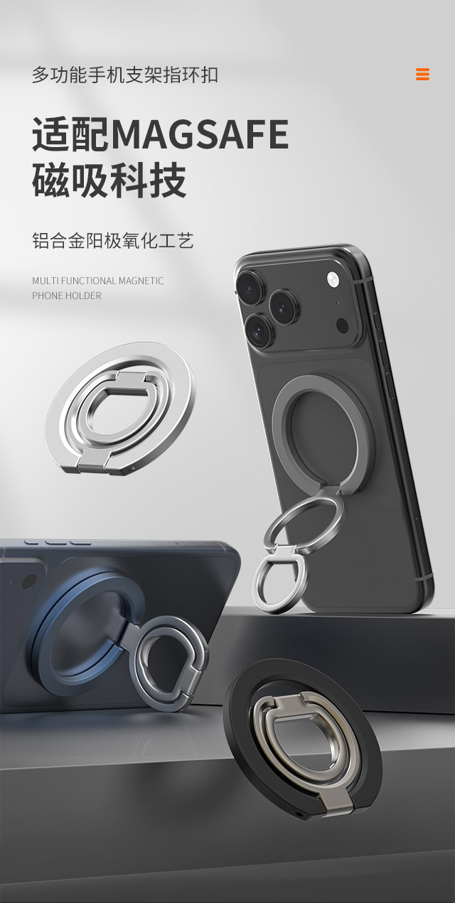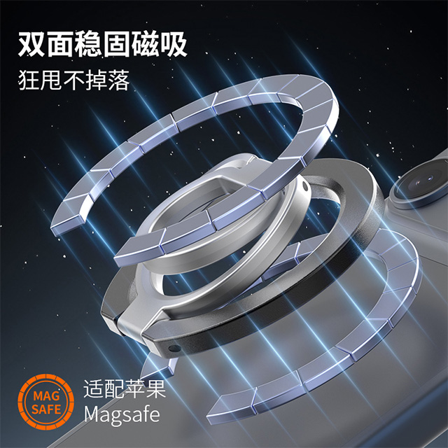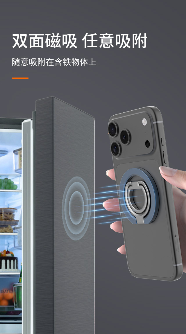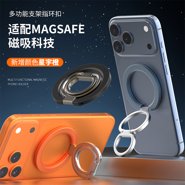 森亿新品-适配苹果Magsafe磁吸,双面磁指环扣手机支架,角度任意可调,方便携带