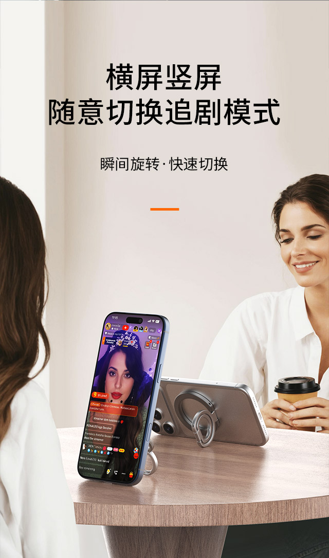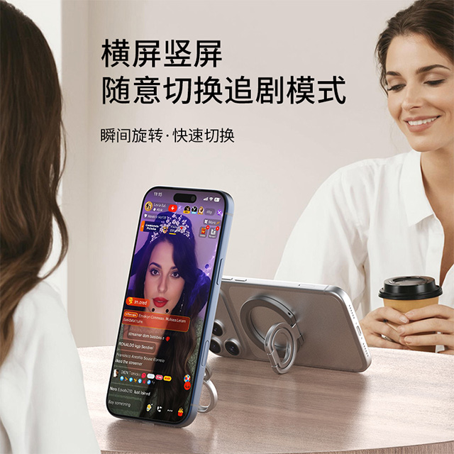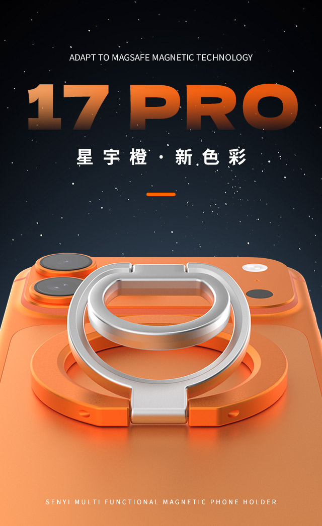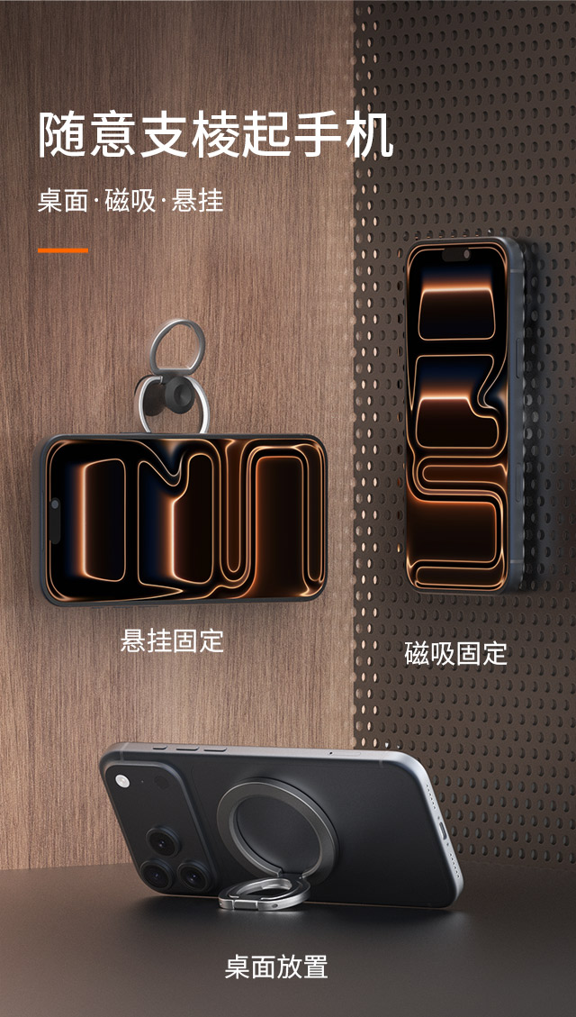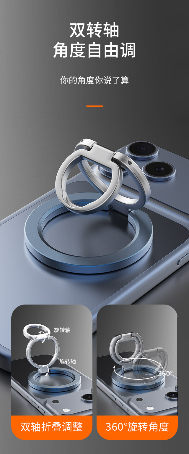 森亿新品-适配苹果Magsafe磁吸,双面磁指环扣手机支架,角度任意可调,方便携带
