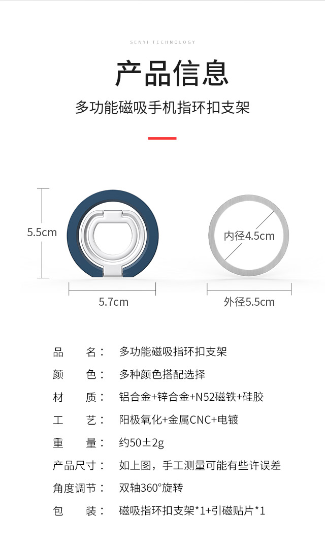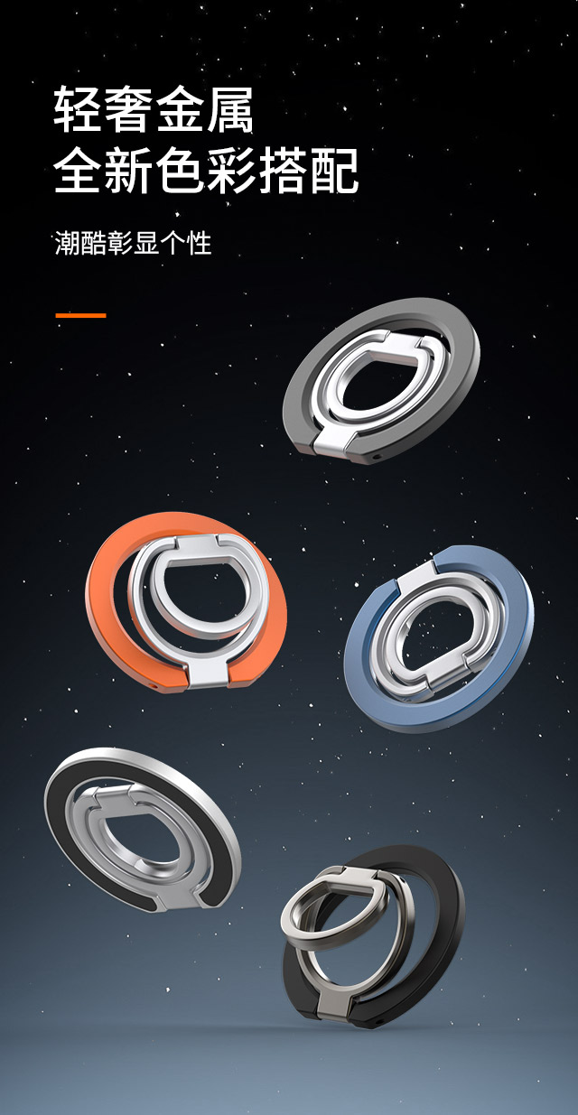 森亿新品铝合金阳极氧化工艺Magsafe双面磁指环扣手机支架